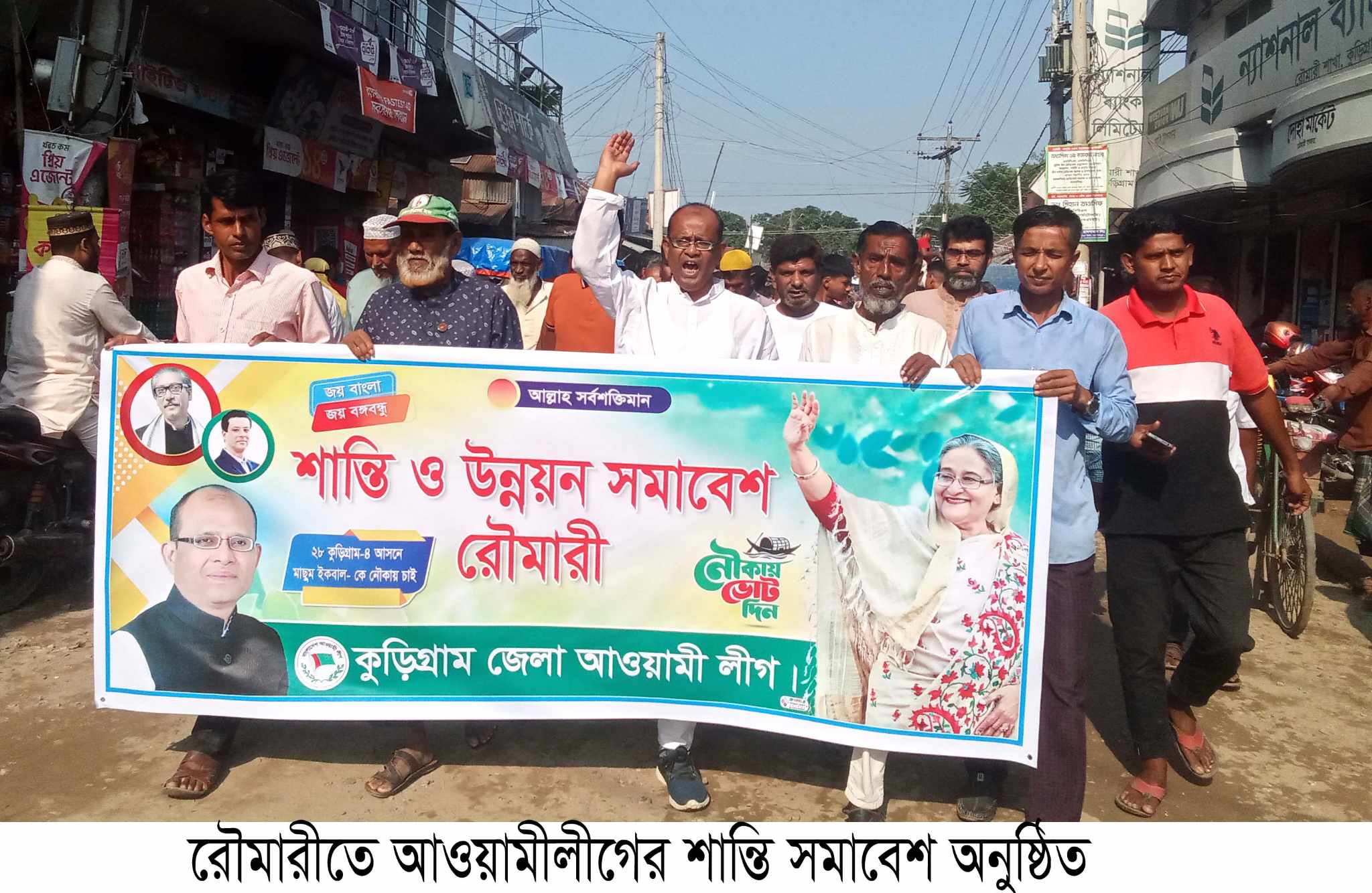 বঙ্গবন্ধুর কন্যা মাননীয় প্রধানমন্ত্রী.রাষ্ট্রনায়ক শেখ হাসিনার নেতৃত্বে দেশের উন্নয়ন ও শান্তি সমাবেশ পালন করা হয়েছে। কুড়িগ্রাম জেলা আওয়ামীলীগের আয়োজনে ও এ্যাড. মাছুম ইকবাল এর নেতৃত্বে শান্তি সমাবেশ পালন করা হয়।