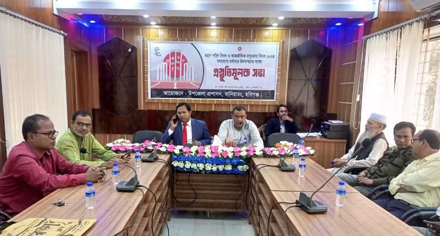 বানিয়াচংয় শহীদ দিবস ও আন্তর্জাতিক মাতৃভাষা দিবস যথাযোগ্য মর্যাদায় উদযাপনের লক্ষে প্রস্তুতিমুলক সভা অনুষ্ঠিত হয়েছে।
