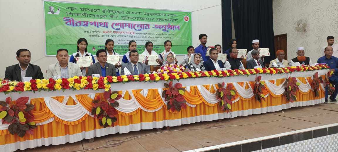 বিজয় কর রতন, মিঠামইন (কিশোরগঞ্জ) প্রতিনিধি:- মিঠামইন রাষ্ট্রপতি আবদুল হামিদ অডিটোরিয়ামে বুধবার ২৮ শে ফেব্রুয়ারি দুপুরে বঙ্গবন্ধুর আদর্শ ও মুক্তিযুদ্ধের চেতনা বাস্তবায়ন প্রকল্পের অধীনে) যুদ্ধকালীন বীরত্ব গাথা শোনানোর অনুষ্ঠান অনুষ্ঠিত হয়।