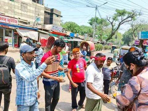 বুধবার দুপুরে নীলফামারীর সৈয়দপুর উপজেলার পাঁচ মাথার মোড়ে প্রায় ১০ শতাধিক রিক্সা চালক ও ভ্যান চালককে ফ্রী ঠান্ডা পানি ও শরবত খাওয়ান জনপ্রিয় এই সেচ্ছাসেবী সংস্থা টি। ঠান্ডা পানি ও শরবত খেতে আশা কয়েকজন রিক্সা চালক বলেন এই তীব্র তাপদাহ ও গরমে আমরা একেবারে নাজেহাল হয়ে পড়েছি গাড়ি নিয়ে রাস্তায় নামতে পারছি না , গাড়ি চালালেও আমরা বেশিক্ষণ রোদে থাকতে থাকতে পারছি না একটুতেই আমাদের গলা শুকিয়ে কাঠ হয়ে যাচ্ছে , কোথাও একটু ঠান্ডা পানি বা শরবত খেতে পাচ্ছি না কারন এই গরমের মধ্যে গাড়ি চালিয়ে যা উপার্জন করছি তাতে সংসার চালানো কষ্ট হয়ে পড়েছে তাই আমরা ঠান্ডা পানি বা শরবত কিনে খেতে পারি না। তবে আজকে আমাদের সৈয়দপুরের একটি জনপ্রিয় সেচ্ছাসেবী সংস্থা আলোকিত সৈয়দপুর যে আমাদের কে একটু ঠান্ডা পানি ও শরবত খাওয়ালো তাতে আমরা খুব আনন্দিত একটু হলেও তো আমরা ঠান্ডা পানি ও শরবত খেতে পেলাম, তাই আমরা চাই এই সেচ্ছাসেবী সংস্থা যে তাদের এই কার্য ক্রম সুনামের সাথে পরিচালনা করতে পারে ।