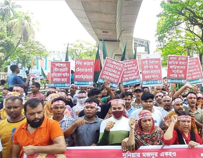 পুরানা পল্টন থেকে জাতীয় প্রেসক্লাব পর্যন্ত সড়কে সমাবেশ ও মিছিল নিয়ে যোগ দেয় জাতীয় শ্রমিক জোট, সম্মিলিত গার্মেন্টস শ্রমিক ফেডারেশন, গার্মেন্টস শ্রমিক ট্রেড ইউনিয়ন, জাতীয় শ্রমিক ফেডারেশন, নৌযান শ্রমিক ফেডারেশন, বহুমুখী হর্কার্স সমিতি, জাতীয় মুক্তি কাউন্সিল, সমাজতান্ত্রিক শ্রমিক ফ্রন্ট, বাংলাদেশ দর্জি শ্রমিক ফেডারেশন, জাতীয় সমাজতান্ত্রিক শ্রমিক জোট, জাতীয় গণতান্ত্রিক শ্রমিক ফেডারেশন, ইমারত শ্রমিক ইউনিয়ন, বাংলাদেশ ইন্সটিটিউট অব লেবার স্টাডিজ, বাংলাদেশ টেড ইউনিয়ন সংঘ, কর্মজীবী নারী, বাংলাদেশ হোটেল রেস্টুরেন্ট সুইটমিট শ্রমিক ফেডারেশন, গ্রীন বাংলা গার্মেন্টস ওয়ার্কার্স ফেডারেশন, ঢাকা মহানগরীর প্রাইভেট কার ও ট্যাক্সি ক্যাব ড্রাইভার্স ইউনিয়ন, জাতীয় গার্হস্থ্য নারী শ্রমিক ইউনিয়ন, বাংলাদেশ ট্রাস্ট গার্মেন্টস শ্রমিক কর্মচারী ফেডারেশন, বাংলাদেশ সড়ক পরিবহন ফেডারেশন, বাংলাদেশ ট্রেড ইউনিয়ন সংঘ, লেবার পার্টি, গৃহশ্রমিক অধিকার প্রতিষ্ঠা নেটওয়ার্কসহ বিভিন্ন সংগঠন।