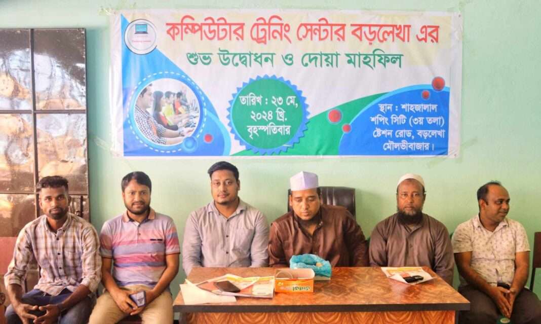 মৌলভীবাজারের বড়লেখায় পৌর শহরের স্টেশন রোডের শাহজালাল শপিং সিটির ৩য় তলায় কম্পিউটার ট্রেনিং সেন্টারের শুভ উদ্বোধন উপলক্ষে মিলাদ ও দোয়া মাহফিল অনুষ্ঠিত হয়েছে।
