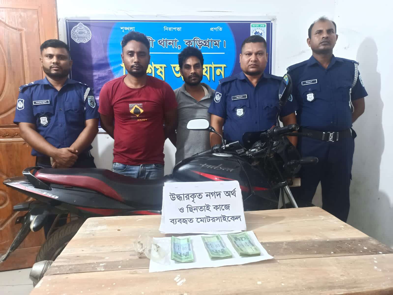 গ্রেফতার কৃত আসামী মেহেদি এর নিকট থেকে ছিনতাই কাজে ব্যবহৃত একটি পালসার মোটর সাইকেলসহ ছিনতাইকৃত টাকার মধ্যে ১৬,৫০০(ষোল হাজার পাঁচশত) টাকা ও আকরব আলী এর নিকট থেকে ১৫,০০০(পনের হাজার) টাকা মোট ৩১,৫০০(একত্রিশ হাজার পাঁচশত) টাকা উদ্ধার হয়। এ বিষয়ে বাদিনী মোছাঃ নুরিমা আক্তার স্বামী মৃত রফিকুল ইসলাম সাং চর বন্দবের থানা রৌমারী জেলা কুড়িগ্রাম থানায় এজাহার দায়ের করলে রৌমারী থানার মামলা নং ১৫ তারিখ ২৮/৫/২০২৪ খ্রীঃ ধারা – আইন শৃঙ্খলা বিঘ্নকারী অপরাধ(দ্রুত বিচার) আইন,২০০২ এর ৪/৫/৭ ধারা রুজু করা হয়। এব্যাপারে রৌমারী থানার ভারপ্রাপ্ত অফিসার ইনচার্জ আব্দুল্লা হিল জামান জানান, ছিনতাই হওয়ার ঘটনায় দুই জনকে আটক করা হয়েছে। সময় মতো তাদেরকে কুড়িগ্রাম জেল হাজতে পাঠানো হবে।