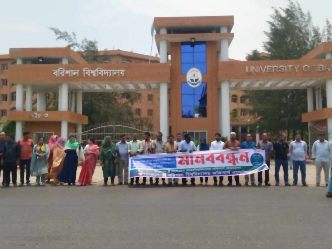 দাবিতে একাত্মতা প্রকাশ করে আরও বক্তব্য রাখেন কল্যাণ পরিষদ গ্রেড ১১-১৬ এর সভাপতি আরিফ হোসেন সুমন, সাবেক সভাপতি শাহাজাদা খান এবং কল্যাণ পরিষদ গ্রেড ১৭ থেকে ২০ এর সভাপতি আরিফ সিকদার। মানববন্ধনে বরিশাল বিশ্ববিদ্যালয়ের কর্মকর্তা কর্মচারীরা অংশগ্রহণ করেন।