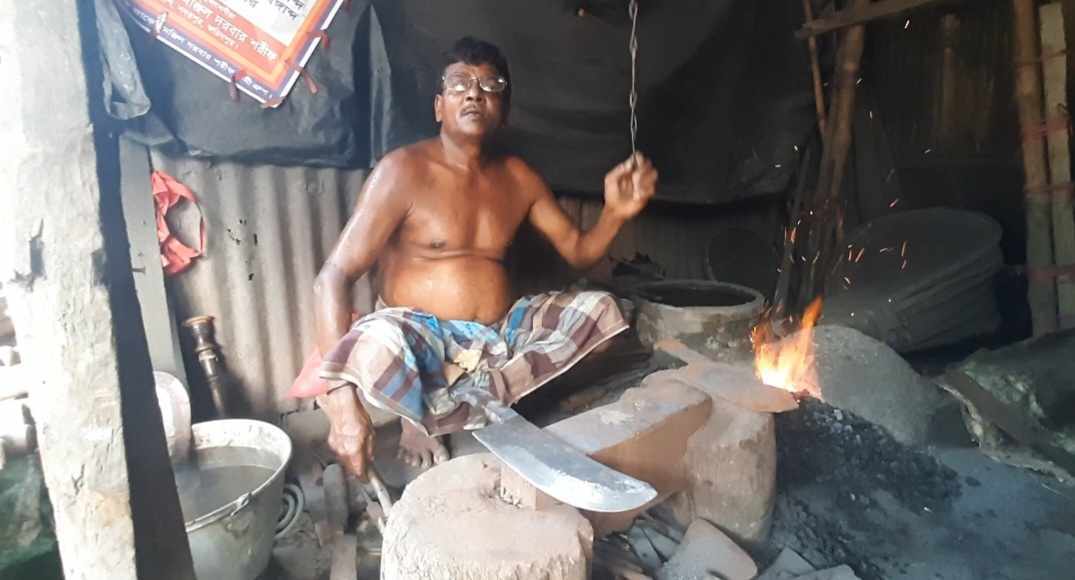 কয়লার দগদগে আগুনে লোহাকে পুড়িয়ে পিটিয়ে তৈরি করছেন সব ধারালো সামগ্রী। তবে এসব তৈরিতে এখনো আধুনিকতার তেমন কোন ছোঁয়া লাগেনি।