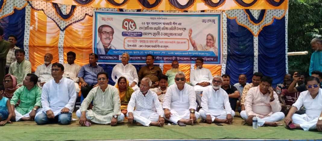 কুড়িগ্রামের ফুলবাড়ীতে পৃথকভাবে কর্মসূচি পালনের মধ্যদিয়ে আ.লীগের ৭৫ তম প্রতিষ্ঠা বার্ষিকী উদযাপন করেছে দলটির নেতা কর্মীরা। দিবসটি উপলক্ষে উপজেলা আওয়ামী লীগের দুই গ্রুপ পৃথকভাবে জাতীয় ও দলীয় পতাকা উত্তোলন, বঙ্গবন্ধুর প্রতিকৃতিতে পুষ্পস্তবক অর্পণ, র্যালী ও আলোচনা সভার আয়োজন করে।