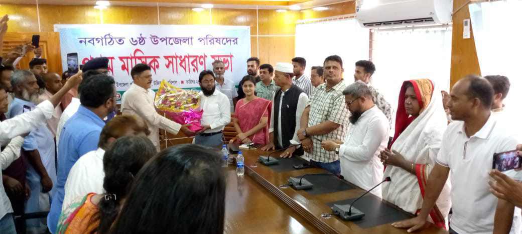 ২৪ জুন সোমবার সকাল দশটায় উপজেলা পরিষদ সভাকক্ষে উপজেলা নির্বাহী কর্মকর্তা মোঃ সাখাওয়াত হোসেনের মাধ্যমে নবনির্বাচিত উপজেলা চেয়ারম্যান মোঃ হাফিজুর রহমান ইকবাল ও ভাইস চেয়ারম্যান রফিকুল ইসলাম শিপন মোল্লা,মহিলা ভাইস চেয়ারম্যান এডভোকেট মোর্শেদা পারভীনকে দায়িত্ব ভার ও ফুলেল শুভেচ্ছা জানানো হয়। এবং নবনির্বাচিত চেয়ারম্যানদেরকে নিয়ে প্রথম মাসিক সমন্বয় সভা অনুষ্ঠিত হয়।