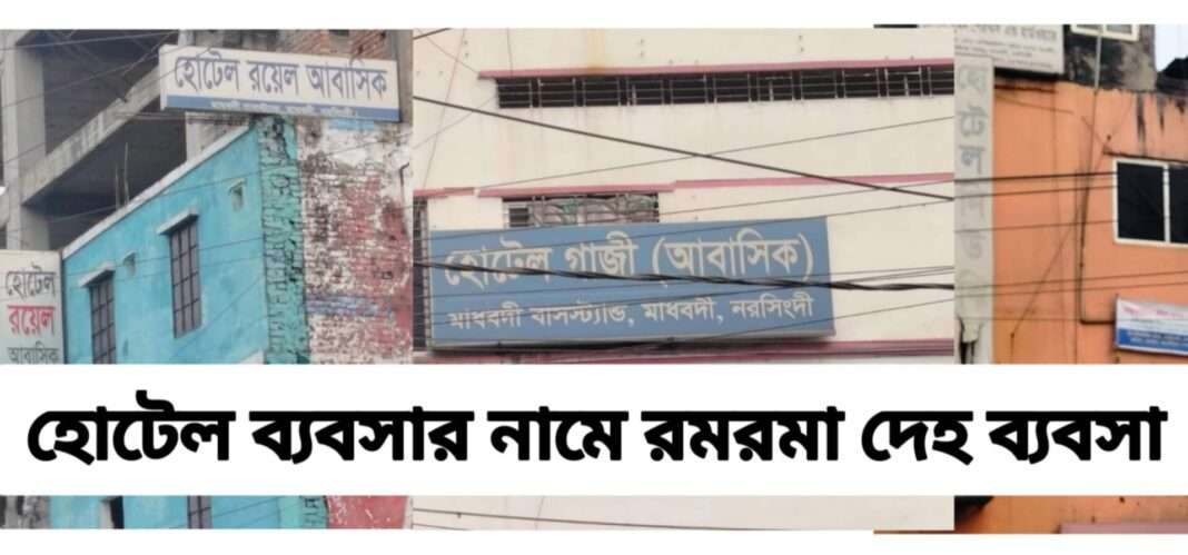 নরসিংদী সদর উপজেলা মাধবদীর প্রাণ কেন্দ্র নতুন বাসস্ট্যান্ড সংলগ্ন হোটেল রয়েল আবাসিক, হোটেল গাজী আবাসিক এবং হোটেল নিউ ঝিনুক আবাসিক সহ আরো কয়েকটি আবাসিক হোটেল রয়েছে। এ হোটেলগুলো শুধুমাত্র হোটেল ভাড়া দিয়েই আয় করা সীমাবদ্ধ নয়,বরং তারা হোটেলের আড়ালে বহু অসামাজিক কার্যকলাপে লিপ্ত আছে বলে জানা গেছে।