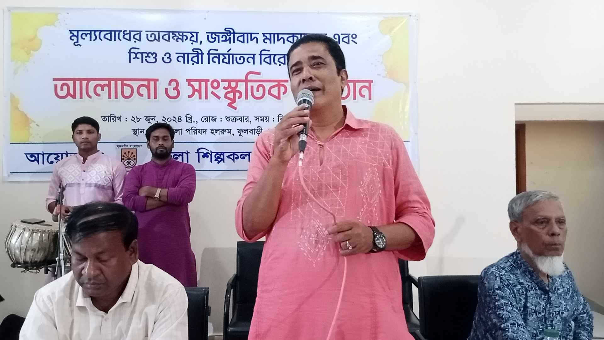 ২৮ জুন শুক্রবার বিকেলে কুড়িগ্রামের ফুলবাড়ীতে উপজেলা পরিষদ হলরুমে জেলা শিল্পকলা একাডেমির আয়োজনে জেলা শিল্পকলার সম্পাদক রাশেদুজ্জামান বাবুর সভাপতিত্বে মূল্যবোধের অবক্ষয়, জঙ্গীবাদ মাদকাসক্ত এবং শিশু ও নারী নির্যাতন বিরোধী আলোচনা সভা ও সাংস্কৃতিক অনুষ্ঠান অনুষ্ঠিত হয়েছে। উক্ত অনুষ্ঠানটি উদ্বোধন করেন উপজেলা সাবেক মুক্তিযোদ্ধা কমান্ডার মজিবর রহমান।