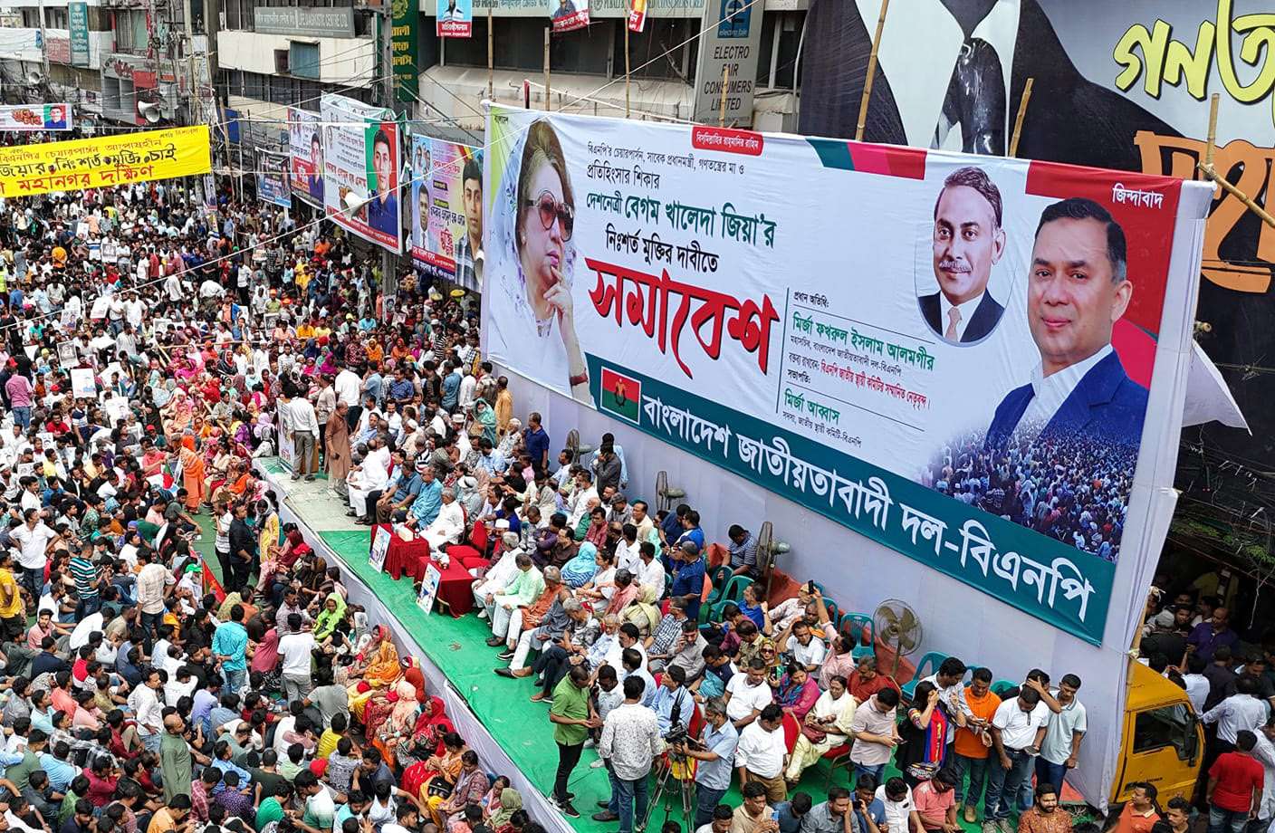 আজ শনিবার (২৯ জুন) বিকেল তিনটায় প্রায় আট মাস পর দলীয় প্রধান বেগম খালেদা জিয়ার মুক্তির দাবিতে রাজধানীর নয়াপল্টনে কেন্দ্রীয় কার্যালয়ের সামনে শান্তিপূর্ণ বড় সমাবেশ করছে বিএনপি। এদিকে একই সময়ে আওয়ামী লীগ তাদের ৭৫তম প্রতিষ্ঠাবার্ষিকী উপলক্ষে বিকেলে বঙ্গবন্ধু অ্যাভিনিউতে নিজেদের প্রধান কার্যালয়ের সামনে আওয়ামী লীগ কর্মসূচি দিয়েছে। এই পাল্টাপাল্টি সমাবেশ ও আলোচনা সভাকে কেন্দ্র করে সতর্ক অবস্থান নিয়েছে আইনশৃঙ্খলা বাহিনীর সদস্যরা।
