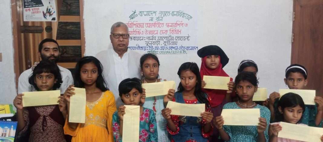 “স্মার্ট বাংলাদেশ গড়তে বাল্যবিবাহকে না, পড়াশুনা চালিয়ে যাওয়া,” এই প্রতি পাদ্যকে সামনে রেখে ৩০ জুন বিকেল ৩ ঘটিকায় কুড়িগ্রামের ফুলবাড়ীতে উদয়াঙ্কুর সেবা সংস্থার অফিসে একশনএইড বাংলাদেশ এর সহযোগিতায়, গার্লস সাপোর্টার প্রোজেক্ট ফুলবাড়ীর বাস্তবায়নে উপজেলার শিমুলবাড়ী, ফুলবাড়ী, ও বড়ভিটা এই তিনটি ইউনিয়নের বিভিন্ন স্কুল,কলেজ পড়ুয়া হতদরিদ্র ছাত্রীদের ২০ জনকে ২ লক্ষ ও ১০ জনকে ৩ হাজার করে ৩০ হাজার টাকার চেক নারীশিক্ষার অগ্রগতির লক্ষে স্কলারশিপ ও আইজিএ উন্নয়নে চেক বিতরণ করা হয়েছে।