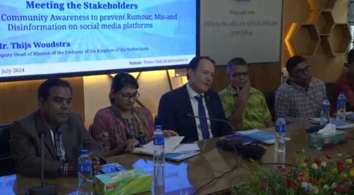 বৃহস্পতিবার দুপুরে ব্রাহ্মণবাড়িয়া প্রেসক্লাব মিলনায়তনে আয়োজিত এক বৈঠকে প্রধান অতিথির বক্তব্যে তিনি এ কথা জানান। সোশ্যাল মিডিয়ায় গুজব ও অপতথ্য প্রতিরোধে জনসচেতনতা বৃদ্ধির লক্ষ্যে সাউথ এশিয়া সেন্টার ফর মিডিয়া ইন ডেভেলপমেন্ট (সাকমিড) আয়োজিত অনুষ্ঠানে বক্তারা জানান, গুজবের শহর এই ব্রাহ্মণবাড়িয়া।