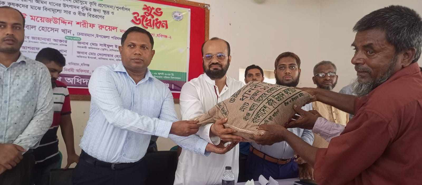 পরে অতিথিবৃন্দ কৃষকদের হাতে সার ও বীজ বিতরণ করেন। বানিয়াচং উপজেলার ১৫টি ইউনিয়নে ১২শ কৃষকের মাঝে ২০ কেজি করে সার ও ৫ কেজি করে বীজ বিতরণ করা হয়।