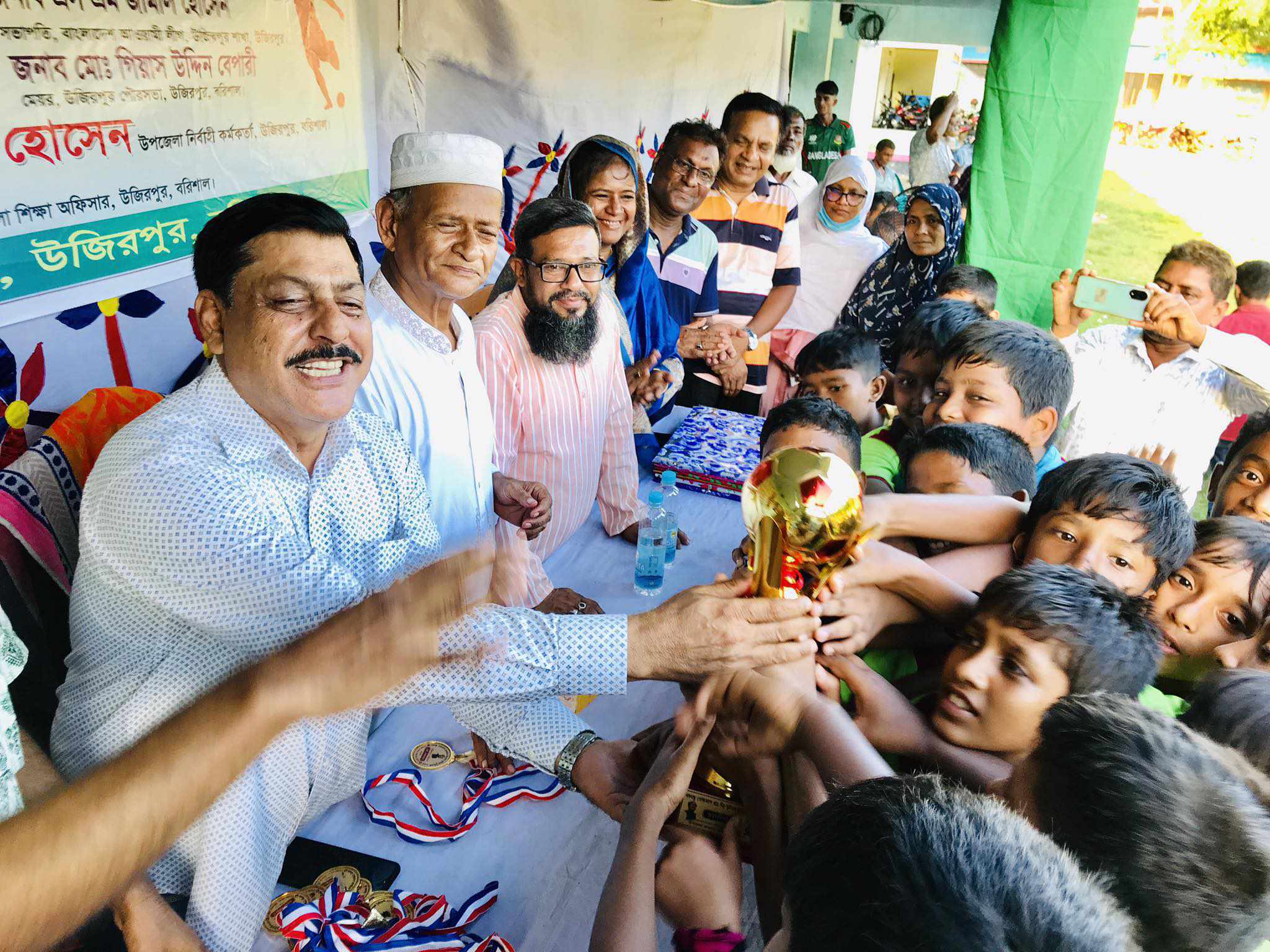 বিকাল ৪ টায় বঙ্গমাতা বেগম ফজিলাতুন্নেছা মুজিব গোল্ডকাপের ফাইনালে উজিরপুর সরকারি মডেল প্রাথমিক বিদ্যালয় বনাম মুন্ডপাশা সরকারি প্রাথমিক বিদ্যালয় এর খেলায় মুন্ডপাশা সরকারী প্রাথমিক বিদ্যালয় বিজয়ী হয়। উপজেলা প্রশাসনের আয়োজনে পুরস্কার বিতরনী অনুষ্ঠানে প্রধান অতিথি হিসেবে বক্তব্য রাখেন উপজেলা পরিষদের চেয়ারম্যান মোঃ হাফিজুর রহমান ইকবাল, উপজেলা আওয়ামী লীগের সভাপতি এসএম জামাল হোসেন, ভাইস চেয়ারম্যান রফিকুল ইসলাম সিপন মোল্লা, মহিলা ভাইস চেয়ারম্যান এ্যাডভোকেট মোর্শেদা পারভীন,এসময় উপস্থিত ছিলেন ডব্লিউ বি ইউনিয়ন ইনিষ্টিটিউশনের প্রধান শিক্ষক মোঃ শাহে আলম, আওয়ামী লীগ নেতা মোঃ ইকবাল হোসেন বালী, কামাল হোসেন সবুজ,উজিরপুর সাংবাদিক ইউনিয়ন এর সভাপতি আঃ রহিম সরদার সহ বিভিন্ন বিদ্যালয়ের শিক্ষক শিক্ষিকা বৃন্দ, সার্বিক তত্বাবধানে ছিলেন উপজেলা শিক্ষা অফিসার মোঃ রুহুল আমিন। পরে অতিথিরা বিজয়ীদের মাঝে গোল্ডকাপ ও মেডেল ও পুরস্কার প্রদান করেন।