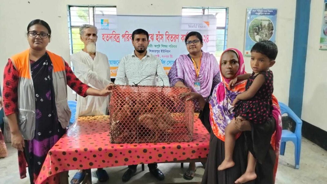 বরিশাল জেলার উজিরপুর উপজেলার শিকারপুর, উজিরপুর পৌরসভা, সাতলা,হারতা ও জল্লা ইউনিয়নে পাঁচশত হতদরিদ্র প্রত্যেক পরিবারকে দশটি করে হাঁস বিতরণ করা হয়। সেন্ট্রার ফর রুরাল সার্ভিস (সিআরএসএস)এর আয়োজনে ও উজিরপুর এরিয়া প্রোগ্রাম ওয়ার্ল্ড ভিশন এর সহযোগিতায় অপুষ্ট শিশুর হতদরিদ্র পরিবারের মাঝে ৫ হাজার উন্নত জাতের খাকি ক্যাম্বেল হাঁস বিতরণ করা হয়।