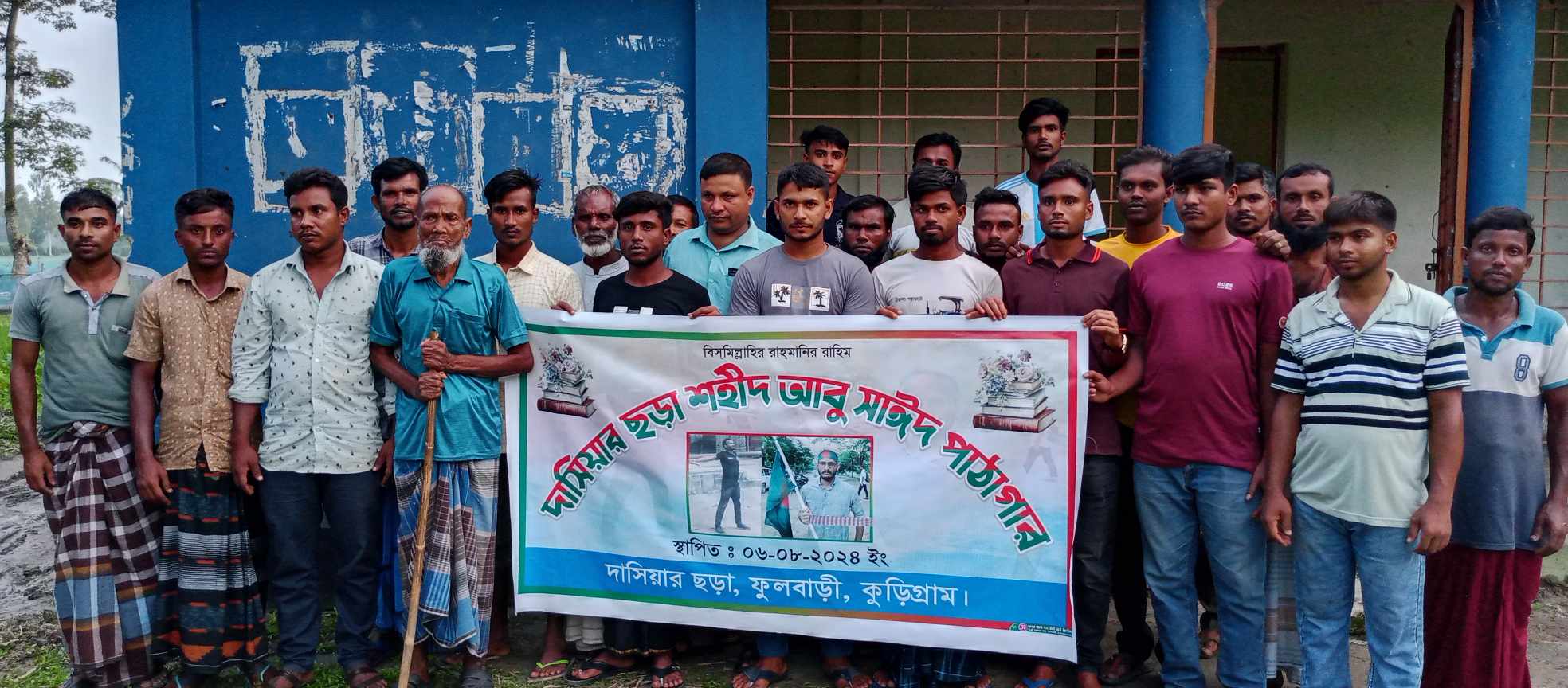 বৈষম্য বিরোধী ছাত্র আন্দোলনে রংপুরের আলোচিত শহীদ আবু সাঈদকে স্বরণীয় করে রাখতে রবিবার ১১ আগষ্ট সন্ধ্যায় কুড়িগ্রামের ফুলবাড়ী উপজেলার সাবেক ছিটমহল দাসিয়ারছড়ার ছিটমহল বোর্ড ঘরে খবির উদ্দিনের সভাপতিত্বে বৈষম্য বিরোধী ছাত্র আন্দোলনের ছাত্রদের আয়োজনে দাছিয়ারছড়া শহীদ আবু সাঈদ পাঠাগারের শুভ উদ্বোধন করেন অবসরপ্রাপ্ত সেনা সদস্য ফজলুল হক ত্রিপুল।