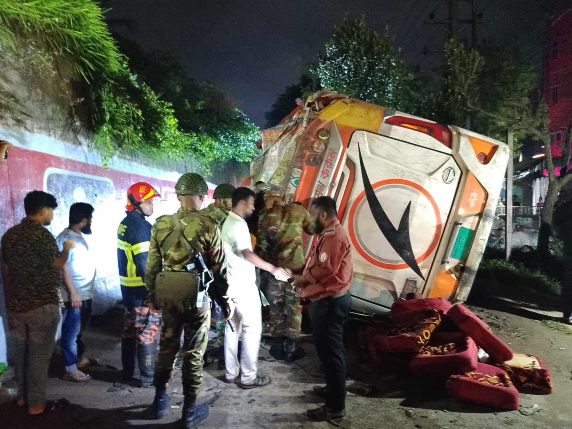 শনিবার (১০ আগস্ট) রাত সাড়ে ১২টার দিকে এ দুর্ঘটনা ঘটে। নিহত নুরুল ইসলাম সিলেট গোবিন্দগঞ্জ বিশ্বনাথ এলাকার আবুল মন্নাফের ছেলে। আহতদের বেশ কয়েকজনকে গুরুতর অবস্থায় ঢাকা মেডিকেল কলেজ হাসপাতালে পাঠানো হয়েছে।
