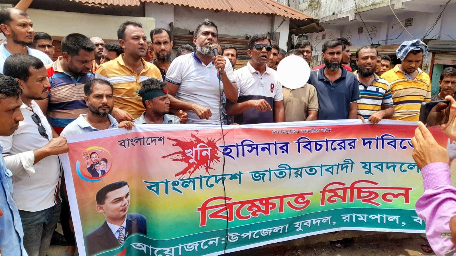 বাগেরহাটের রামপালে শেখ হাসিনার বিচার দাবীতে উপজেলা যুবদল এক বিক্ষোভ ও সমাবেশ করেছে। বুধবার (১৪ আগষ্ট) বেলা ১১ টায় প্রেসক্লাব রামপালের সামনে মেইন সড়কে উপজেলা যুবদলের আহবায়ক মল্লিক জিয়াউল হক জিয়ার সভাপতিত্বে অনুষ্ঠিত প্রতিবাদ সভা অনুষ্ঠিত হয়।