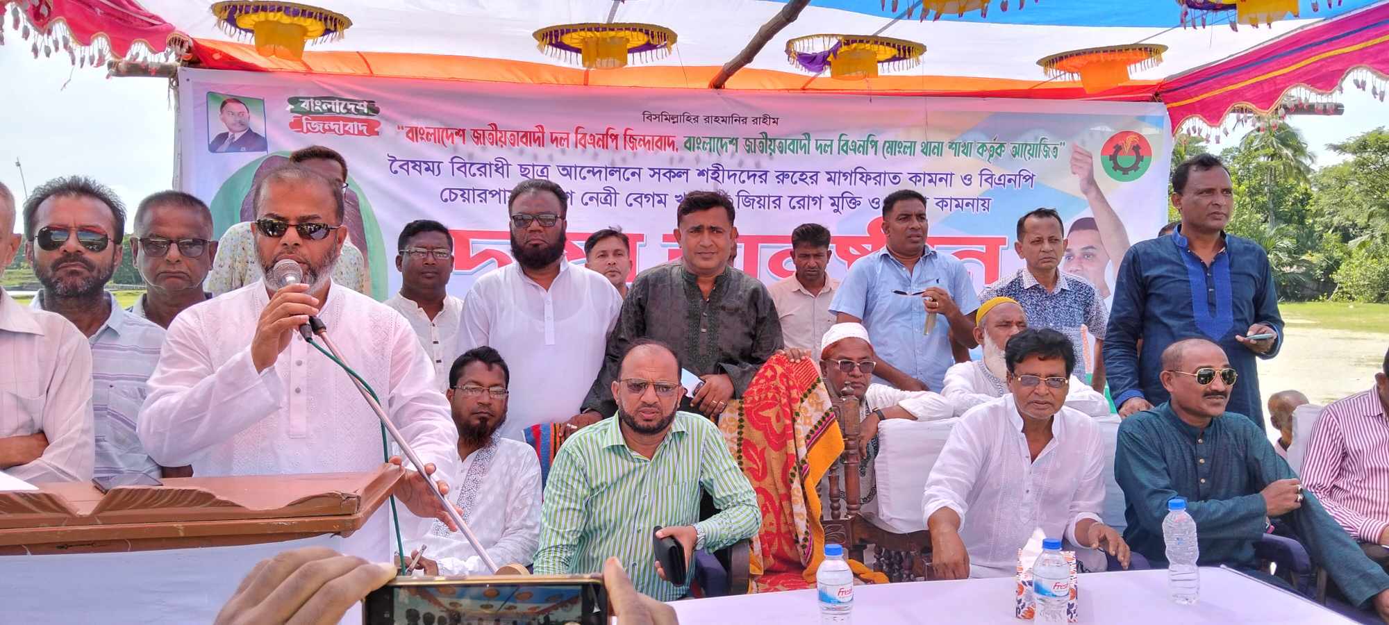 সভাপতির বক্তব্যে বিএনপি নেতা শেখ রুস্তম আলী বলেন বিএনপি নেতাকর্মীরা জনগনের জানমাল রক্ষার দায়িত্ব পালন করছে। তারেক রহমানের নির্দেশে বাগেরহাট জেলা বিএনপির যুগ্ম আহ্বায়ক লায়ন ড. শেখ ফরিদুল ইসলামের নেতৃত্বে রাজপথে আমরা সাহসী ভূমিকা রাখছি। সমাবেশ শেষে বেগম খালেদা জিয়ার রোগমুক্তি ও শহীদ ছাত্রজনতার রুহের মাগফেরাত কামনায় বিশেষভাবে দোয়া-মোনাজাত করে তবারক বিতরণ করা হয়।