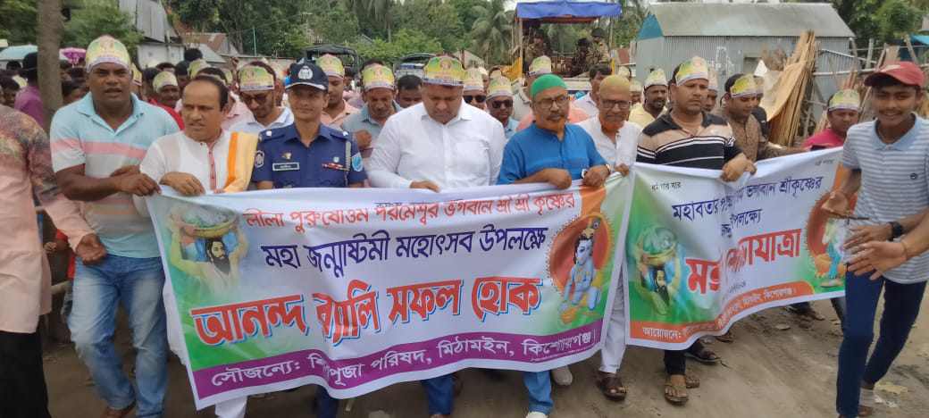 মিঠামইনে বাংলাদেশ হিন্দু, বৌদ্ধ, খ্রিষ্টান কল্যাণ ফ্রন্টের আয়োজনে ভগবান শ্রী কৃষ্ণের জন্মাষ্টমী উপলক্ষে মঙ্গল শোভাযাএা ও আলোচনা সভা অনুষ্ঠিত হয়।