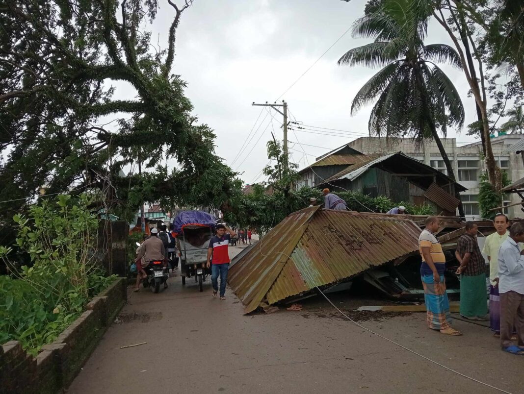 রবিবার সকালে সরেজমিন ঘুরে দেখা গেছে, আমতলী পৌরশহরের কেন্দ্রীয় জামে মসজিদের সামনে সাবরেজিষ্টার অফিসের একটি ৬০ বছরের পুরানো বিশাল আকরে রেন্ট্রিগাছ রবিবার রাতের ঝড়ে উপড়ে ঘরের উপর পরায় ১টি লাইব্রেরী ও ওষুধের দোকান সম্পূর্ণ চূর্ণ-বিচুর্ণ হয়ে যাওয়ায় প্রায় ১০ লক্ষাধিক টাকার ক্ষতি হয়েছে।