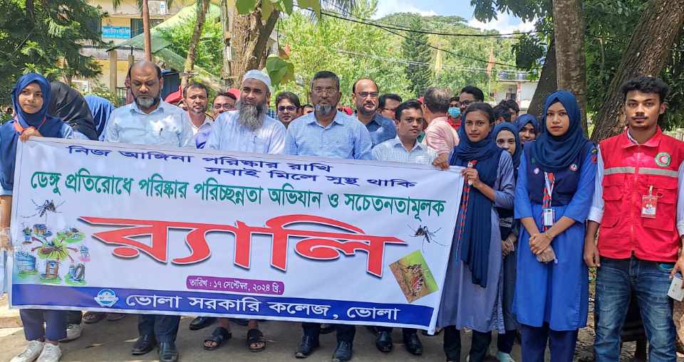 ভোলা সরকারি কলেজে পরিষ্কার-পরিচ্ছন্নতা অভিযান ও সচেতনতামূলক র্যালি অনুষ্ঠিত হয়েছে । ‘নিজ আঙ্গিনা পরিষ্কার রাখি, ‘সবাই মিলে সুস্থ থাকি, এই প্রতিপাদ্যকে সামনে রেখে ১৭ সেপ্টেম্বর বেলা ১২ টায় কলেজ প্রশাসনের আয়োজনে ক্যাম্পাসে এ অভিযান পরিচালনা করা হয় ।