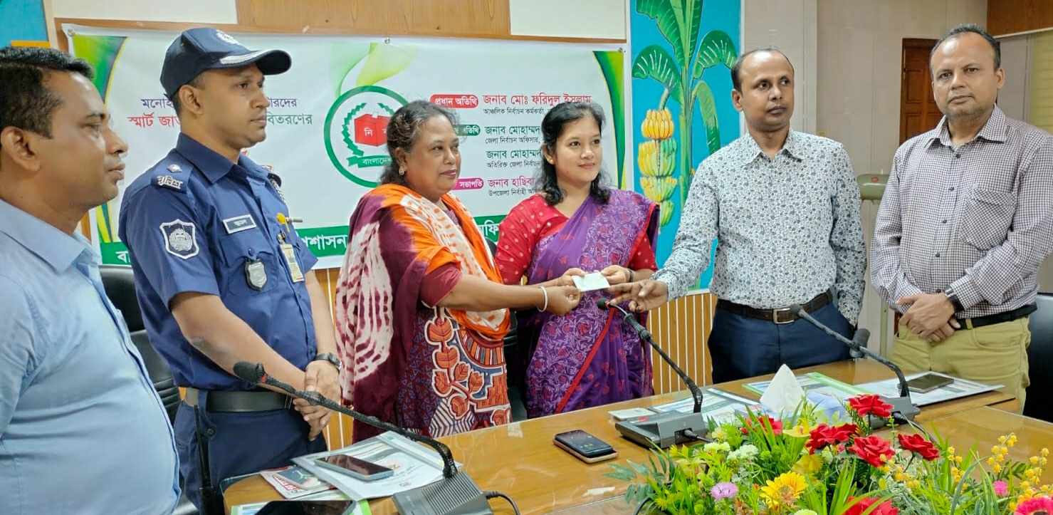 নরসিংদীর মনোহরদীতে উন্নতমানের জাতীয় পরিচয়পত্র (স্মার্টকার্ড) বিতরণ কর্মসূচির উদ্বোধন করা হয়েছে। মঙ্গলবার (১৭ সেপ্টেম্বর) দুপুরে উপজেলা সম্মেলন কক্ষে এই স্মার্ট কার্ড বিতরণ কর্মসূচির আনুষ্ঠানিভাবে উদ্বোধন করা হয়।