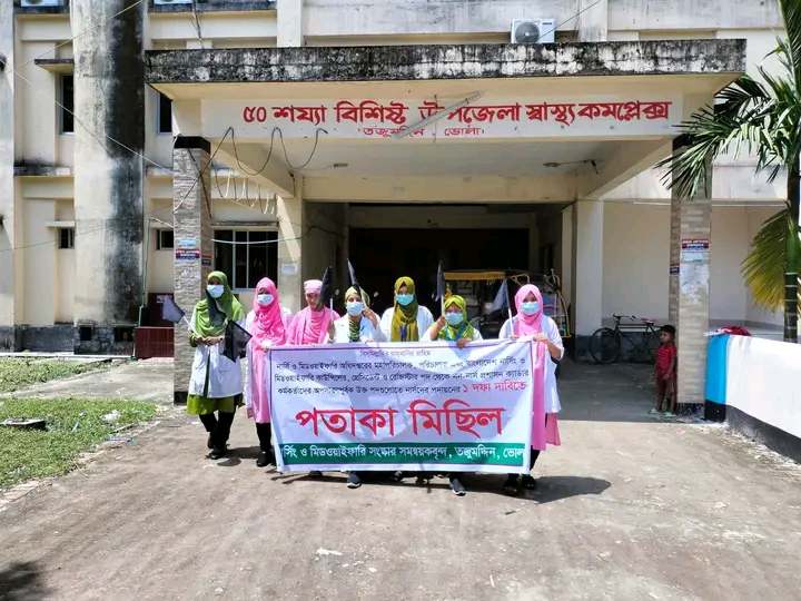 কেন্দ্রীয় কর্মসূচির সঙ্গে সংহতি প্রকাশ করে তজুমদ্দিন স্বাস্থ্য কমপ্লেক্স চত্ত্বরে পতাকা মিছিল শেষে বক্তব্য দেন নার্সিং ও মিডওয়াইফারি সংস্কার পরিষদের সদস্যরা।