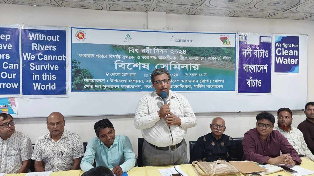 সুন্দরবনের জীববৈচিত্র রক্ষা করতে হলে গঙ্গা নদী দিয়ে মিষ্টি পানির প্রবাহ বাড়াতে হবে। বিশ্ব নদী দিবস উপলক্ষে ২২ সেপ্টেম্বর রবিবার সকালে মোংলা প্রেসক্লাব মিলনায়তনে উপজেলা প্রশাসন, বাংলাদেশ পরিবেশ আন্দোলন (বাপা), সেভ দ্যা সুন্দরবন ফাউন্ডেশন ও সার্ভিস বাংলাদেশ’র আয়োজনে ”ফারাক্কার প্রভাবে বিপর্যস্ত সুন্দরবন ও পশুর নদঃ আন্ত:সীমান্ত নদীতে বাংলাদেশের অধিকার” শীর্ষক সেমিনারে বক্তারা এ সব কথা বলেন।