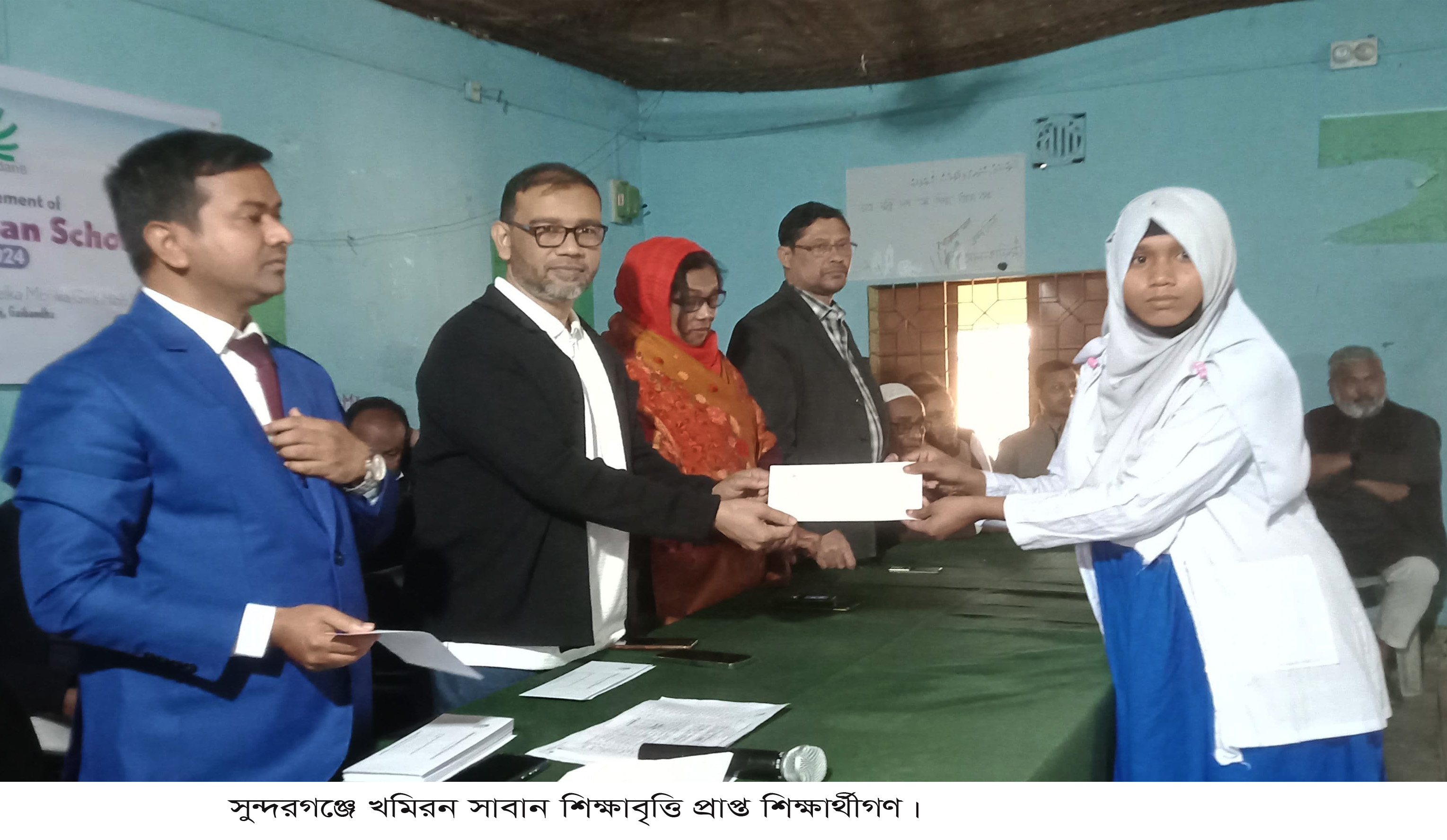 গাইবান্ধার সুন্দরগঞ্জ উপজেলায় মাধ্যমিক স্তরের মেধাবি শিক্ষার্থীদের মাঝে খমিরন সাবান শিক্ষাবৃত্তি প্রদান উপলক্ষে আলোচনা সভা অনুষ্ঠিত হয়েছে। শনিবার উপজেলার বেলকা এমসি উচ্চ বিদ্যালয় হলরুমে বেসরকারি উন্নয়ন সংস্থা স্পন্দনবি এর আয়োজনে শিক্ষাবৃত্তি প্রদানের আলোচনা অনুষ্ঠিত হয়। বেলকা এমসি উচ্চ বিদ্যালয়ের প্রধান শিক্ষক মো. আহসান হাবীব খোকনের সভাপতিত্বে খমিরন সাবান শিক্ষাবৃত্তি প্রদানের আলোচনা সভায় প্রধান অতিথি’র বক্তব্য রাখেন স্পন্দনবি এর ডেপুটি কান্টি ডিক্টের মো. মোস্তাফিজুর রহমান।