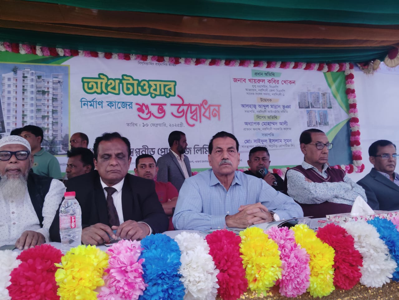সোমবার সন্ধ্যায় শহরের প্রাণকেন্দ্র ১০২ পশ্চিম ব্রাহ্মন্দীতে স্বপ্ননীড় প্রোপার্টিজ লিমিটেড এর ব্যবস্থাপনায় অথৈ টাওয়ার নির্মাণ কাজের শুভ উদ্বোধন করেন নরসিংদী জেলা বিএনপির আহ্বায়ক, কেন্দ্রীয় কমিটির যুগ্ম মহাসচিব, নরসিংদী সদর আসনের সাবেক সাংসদ খাইরুল কবির খোকন।