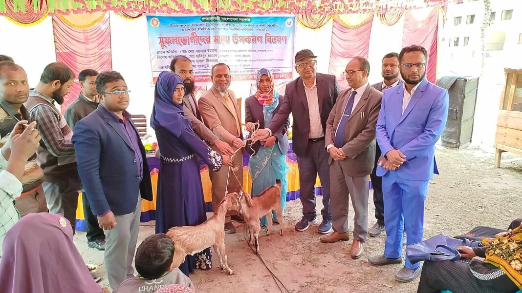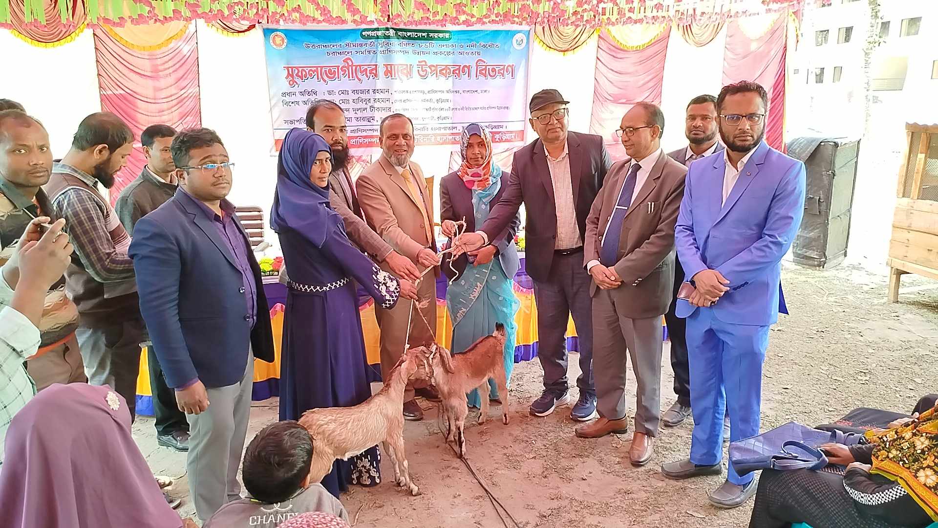 উত্তরাঞ্চলের সীমান্তবর্তী সুবিধা বঞ্চিত ৮৬ টি এলাকা ও নদী বিধৌত চরাঞ্চলে সমন্বিত প্রাণিসম্পদ উন্নয়ন প্রকল্পের আওতায় আজ শনিবার ১৫ ফেব্রুয়ারি দুপুর ১২ টায় কুড়িগ্রামের ফুলবাড়ীতে উপজেলা প্রাণিসম্পদ দপ্তর ও ভেটেরিনারি হাসাপাতাল প্রাঙ্গনে প্রাণিসম্পদ দপ্তর ও ভেটেরিনারি হাসাপাতালের আয়োজনে, উপজেলা প্রাণিসম্পদ কর্মকর্তা আরিফুর রহমান কনকের সঞ্চালনায়, উপজেলা নির্বাহী অফিসার রেহেনুমা তারান্নুম এর সভাপতিত্বে, ৫০ জনকে ২ টি করে ছাগল ও ১টি করে ছাগলের ঘর সুফলভোগীদের মাঝে উপকরণ বিতরণ করা হয়।