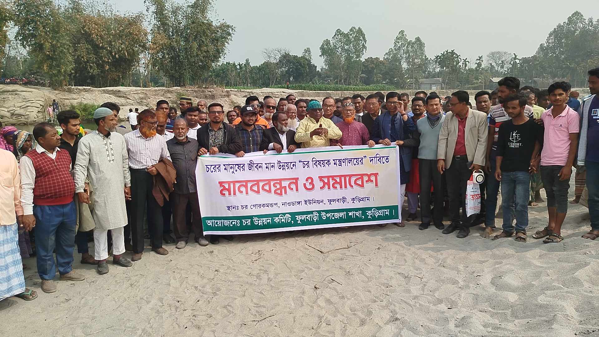 চরাঞ্চলের মানুষের অধিকার ও উন্নয়ন নিয়ে সচেতনতা বৃদ্ধির লক্ষ্যে কুড়িগ্রাম জেলার ফুলবাড়ী উপজেলার নাওডাঙ্গা ইউনিয়নের চর গোরকমন্ডপে এক মানববন্ধন ও সংলাপ অনুষ্ঠিত হয়েছে।