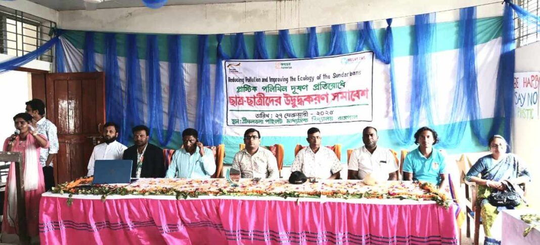 বাগেরহাটের রামপালে প্লাষ্টিক পলিথিন দুষণ প্রতিরোধে ছাত্র-ছাত্রীদের নিয়ে নিয়ে এক উদ্বুদ্ধকরণ সমাবেশ অনুষ্ঠিত হয়েছে। উপজেলার শ্রীফলতলা পাইলট মাধ্যমিক বিদ্যালয়ের অডিটোরিয়াম বৃহস্পতিবার (২৭ ফেব্রুয়ারি) বেলা ১১ টায় বিদ্যালয়ের প্রধান শিক্ষক মো. মোতলুব হোসেনের সভাপতিত্বে সমাবেশে প্রধান অথিতির বক্তব্য দেন উপজেলা মাধ্যমিক দপ্তরের একাডেমিক সুপারভাইজার পুষ্পেন সরকার, বিশেষ অথিতির বক্তব্য দেন প্রেসক্লাব রামপালের সভাপতি এম, এ সবুর রানা, রূপান্তর প্রতিনিধি মো. আতাবুর রহমান টিপু, প্রেসক্লাব সিনিয়র সহসভাপতি মো. মোতাহার মল্লিক, সহসভাপতি এ, এইচ নান্টু, সাধারণ সম্পাদক সুজন মজুমদার প্রমুখ। এ সময় রামপালে ইয়ুথ গ্রুপ সদস্য, বিদ্যালয়ের শিক্ষকবৃন্দ, শিক্ষার্থীরা উপস্থিত ছিলেন।