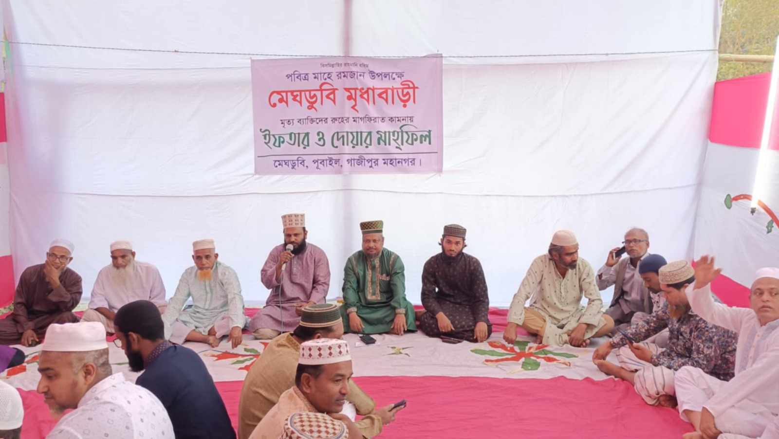 গাজীপুরের পুবাইলে মেঘডুবি মৃধা পরিবারের মরহুম ব্যক্তিদের রুহের মাগফেরাত কামনায় ইফতার ও দোয়া মাহফিল অনুষ্ঠিত হয়েছে। শুক্রবার (৭ মার্চ) বাদ আছর বীর মুক্তিযোদ্ধা আলহাজ্ব মো. আফজালুর রহমান এর সভাপতিত্বে পুবাইল থানা প্রেসক্লাবের সভাপতি মো. খসরু মৃধার সঞ্চালনায় ইফতার পূর্ব আলোচনা সভা অনুষ্ঠিত হয়।