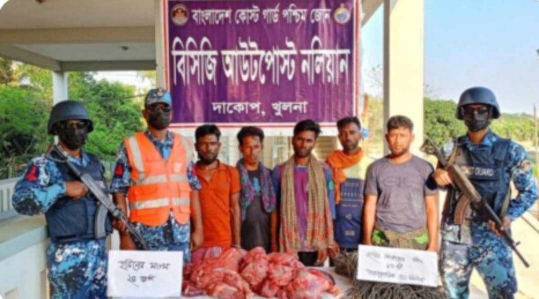 সুন্দরবনের শিবসা নদীতে কোস্টগার্ডের অভিযান পরিচালনা করে ২৫ কেজি হরিণের মাংস সহ ৫ জন হরিণ শিকারীকে আটক করেছে বাংলাদেশ কোস্ট গার্ড পশ্চিম জোন।