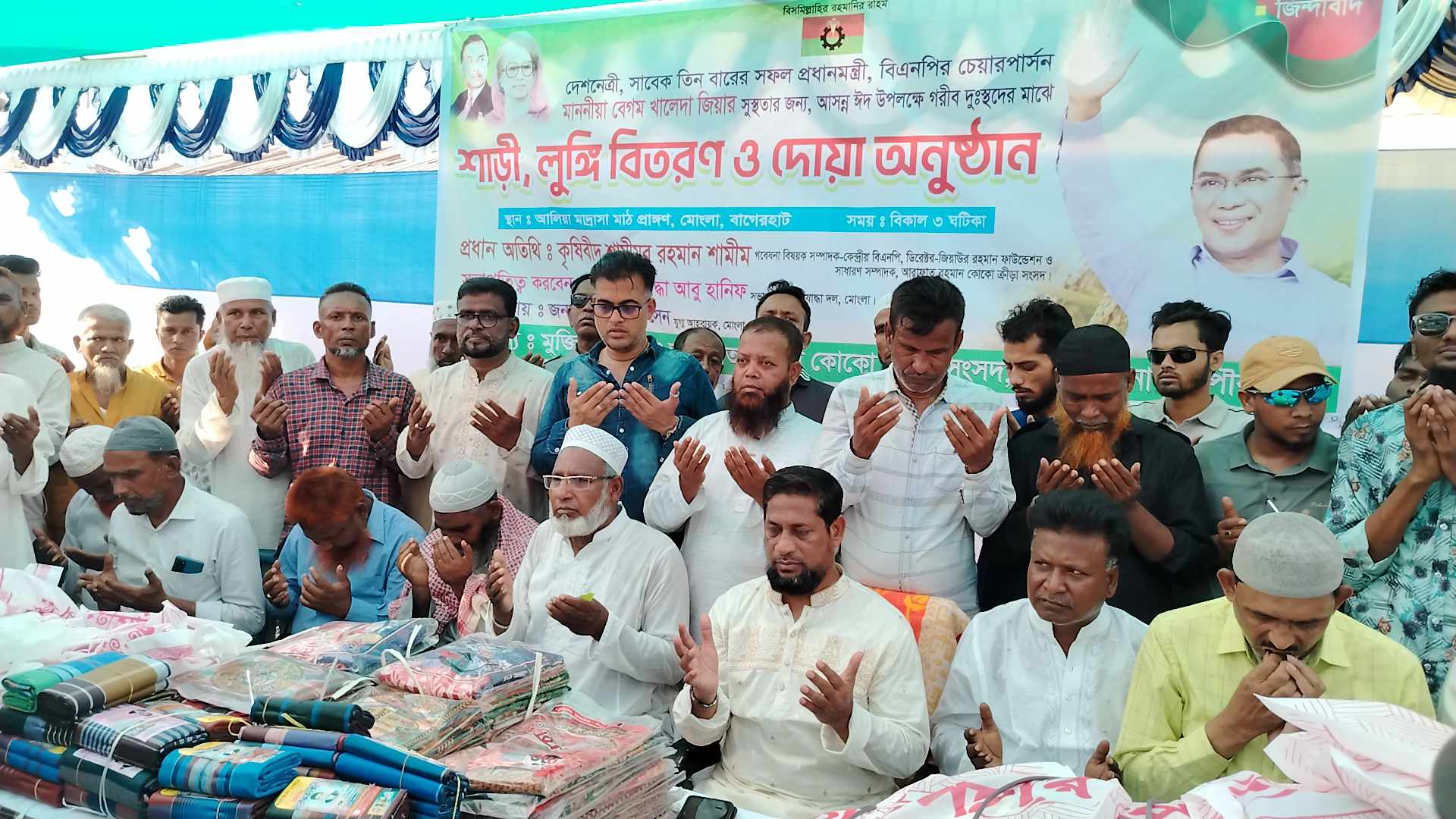 বুধবার(১২ মার্চ) বিকেলে বাগেরহাটের মোংলার চালনা বন্দর সিনিয়র ফাজিল মাদ্রাসা মাঠে বিএনপির চেয়ারপারসন বেগম খালেদা জিয়ার সুস্থতা ও ঈদ উপলক্ষে গরীবদের মাঝে শাড়ী-লুঙ্গি বিরতণ অনুষ্ঠানে প্রধান অতিথির বক্তৃতায় তিনি এ কথা বলেন। এ সময় তিনি ৫ শতাধিক দরিদ্র মানুষের হাতে শাড়ী-লুঙ্গি তুলে দেন। মোংলা মুক্তিযোদ্ধা দল ও আরাফাত রহমান কোকো ক্রীড়া সংসদের আয়োজনে অনুষ্ঠিত এ অনুষ্ঠানে অন্যান্যের মধ্যে উপস্থিত ছিলেন পৌর বিএনপির সদস্য সচিব মাহবুবুর রহমান মানিক, পৌর বিএনপির যুগ্ম আহবায়ক এমরান হোসেন, স্বেচ্ছাসেবক দলের আহবায়ক সাব্বির হোসেন, সদস্য সচিব নুরউদ্দিন টুটুল, মুক্তিযোদ্ধা দল সভাপতি বীর মুক্তিযোদ্ধা আবু হানিফ, আরাফাত রহমান কোকো ক্রীড়া সংসদের কেন্দ্রীয় সদস্য মাকসুদ হাওলাদার, আরাফাত রহমান কোকো ক্রীড়া সংসদের সভাপতি মোঃ সেলিম হাওলাদার ও সাধারণ সম্পাদক মোঃ সোহেল হাওলাদার।