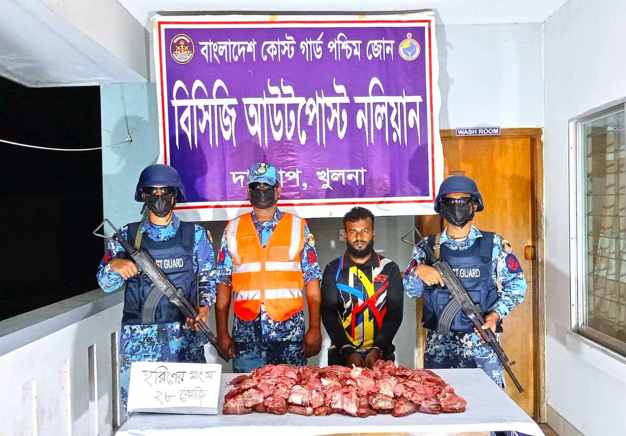 সুন্দরবনের নলিয়ানে অভিযান চালিয়ে ২৮ কেজি হরিণের মাংস সহ ১ হরিণ শিকারীকে আটক করেছে কোস্ট গার্ড পশ্চিম জোন।