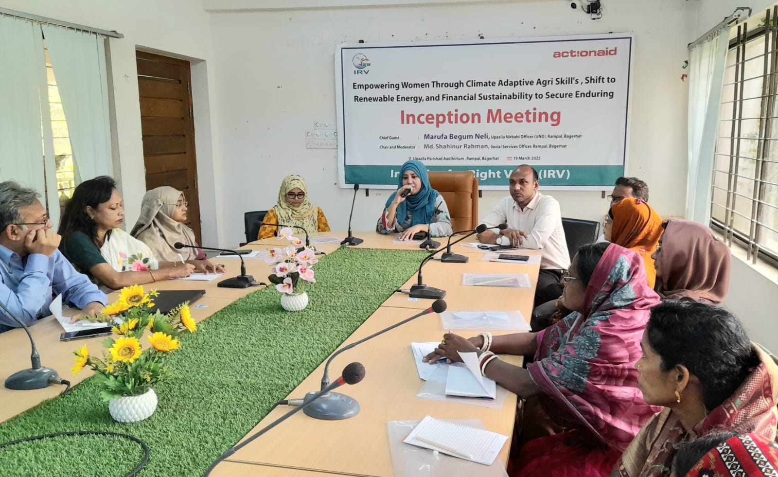 বাগেরহাটের রামপালে জলবায়ু অভিযোজিত কৃষি দক্ষতার মাধ্যমে নারীর ক্ষমতায়ন, পুনর্নবীকরণযোগ্য শক্তির প্রসার এবং স্থায়িত্বশীল অর্থনৈতিক উন্নয়ন নিশ্চিতকরণে অবহিতকরণ সভা অনুষ্ঠিত হয়েছে। বুধবার (১৯ মার্চ) দুপুরে উপজেলা সম্মেলন কক্ষে ইনিশিয়েটিভ রাইট ভিউ (আরআইভি) ও একশন এইডের সহযোগিতায় এই সভার আয়োজন করা হয়।