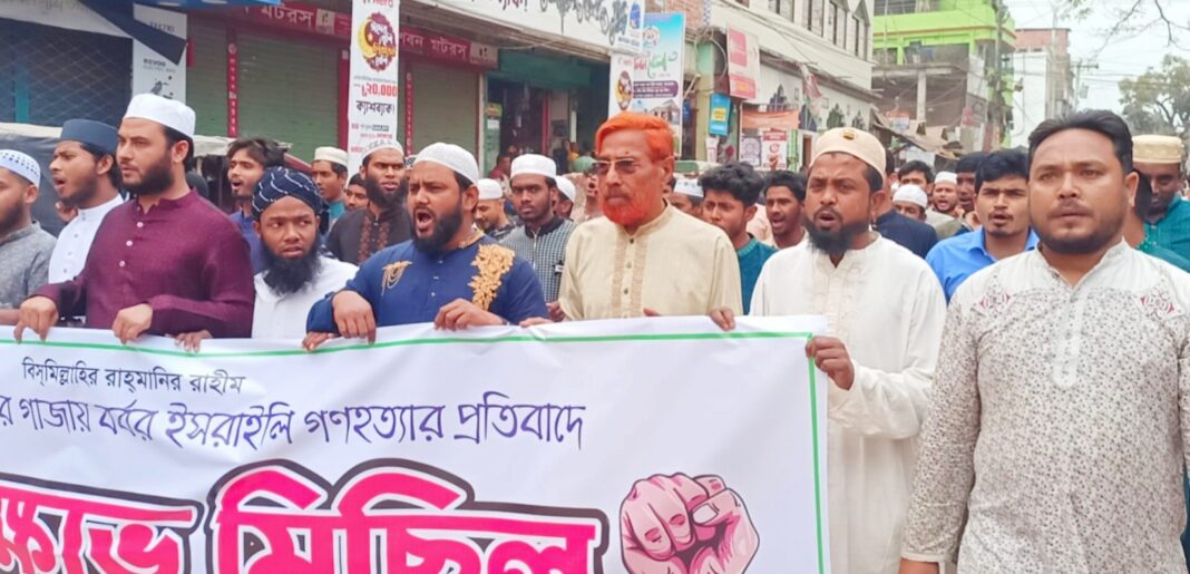 বক্তারা বলেন, ‘গাজার নিরীহ জনগণের ওপর ইসরায়েলের বর্বর হামলা মানবতার বিরুদ্ধে ভয়াবহ অপরাধ। শিশু, নারী ও বৃদ্ধসহ নিরীহ মানুষকে নির্বিচারে হত্যা করা হচ্ছে, যা আন্তর্জাতিক মানবাধিকার লঙ্ঘনের শামিল। বিশ্ববাসীকে এ গণহত্যার বিরুদ্ধে সোচ্চার হতে হবে।’
