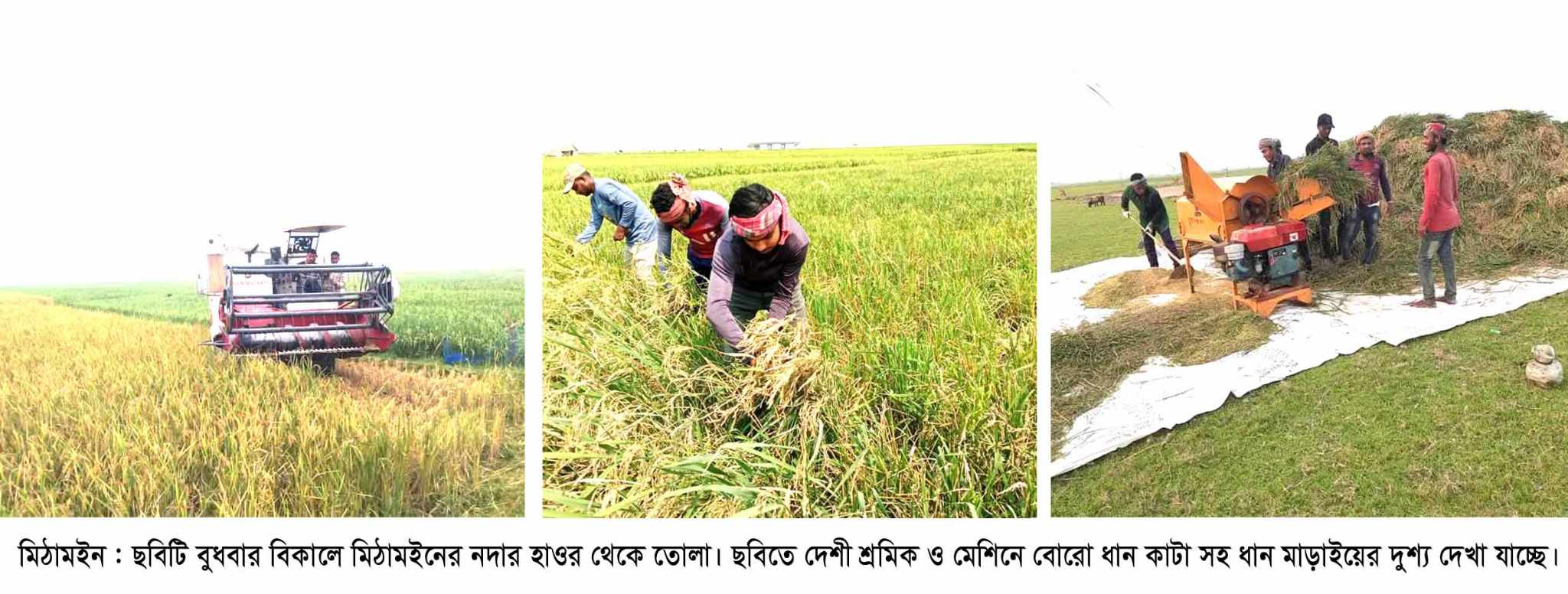কিশোরগঞ্জের হাওর উপজেলা ইটনা, মিঠামইন, অষ্টগ্রাম সহ আশেপাশের হাওরে আগাম জাতের বোরো ধানকাটা শুরু হয়েছে। এবছর ধানের বাম্পার ফলন হলেও, কিছু কিছু বোরো জমিতে পোকার আক্রমণ দেখা দিয়েছে দীর্ঘ ৫ মাস যাবৎ কোনো বৃষ্টি নেই।