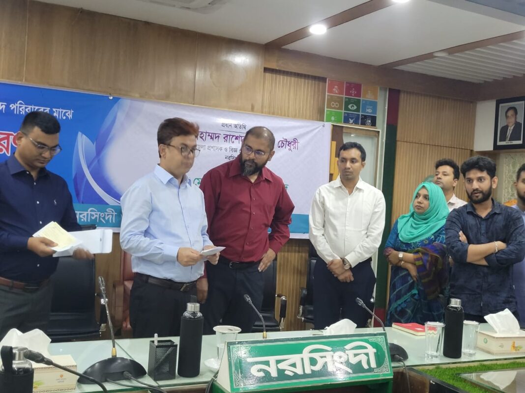 নরসিংদী জেলা পরিষদ হতে জেলা প্রশাসকের কার্যালয়ে বৈষম্য বিরোধী আন্দোলনে নিহত পরিবারের মাঝে চেক বিতরণ করা হয় ১৫ এপ্রিল বুধবার বিকালে ২০টি পরিবারের মাঝে ২ লক্ষ টাকা করে।
