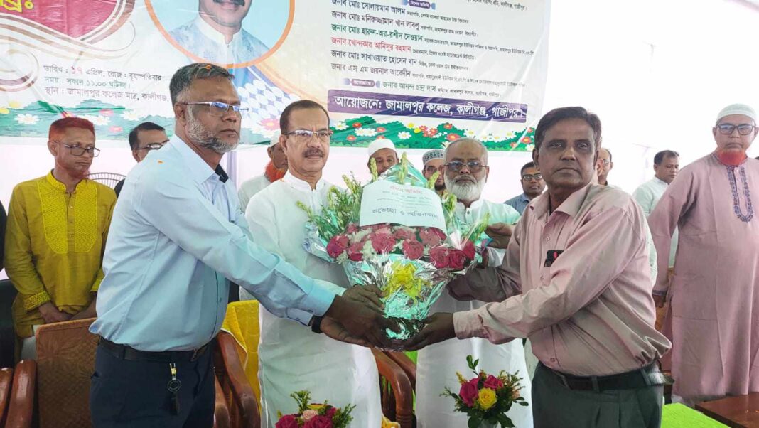 জামালপুর কলেজ, কালীগঞ্জ এর আয়োজনে বৃহস্পতিবার (১৭ই এপ্রিল) সকালে কলেজ মাঠে এই অনুষ্ঠানের আয়োজন করা হয়। অনুষ্ঠানে কলেজের গভরনিং বডির সভাপতি হাজী মোঃ জাহাঙ্গীর কবীর সভাপতিত্বে প্রধান অতিথি হিসেবে উপস্থিত ছিলেন গাজীপুর জেলা বিএনপি’র আহ্বায়ক, গাজীপুর-০৫ আসনের সাবেক সংসদ সদস্য, এ,কে,এম ফজলুল হক মিলন এবং উদ্বোধক হিসেবে উপস্থিত ছিলেন কালিগঞ্জ থানা বিএনপি’র সাধারণ সম্পাদক মোঃ খালেকুজ্জামান (বাবলু)। জামালপুর কলেজের ইংরেজী বিভাগের অধ্যাপক মোঃ মোশারফ হোসেন এবং অর্থনীতি বিভাগের অধ্যাপক লীমা খান এর যৌথ পরিচালনায় বিশেষ অতিথি হিসাবে উপস্থিত ছিলেন বেগম রাবেয়া আহমেদ উচ্চ বিদ্যালয় এর সভাপতি মোঃ সোলায়মান আলম, জামালপুর রাজ মোহন বিদ্যাপীঠ এর সভাপতি মোঃ মনিরুজ্জামান খান লাবলু, জামালপুর ইউনিয়ন পরিষদ এর সাবেক চেয়ারম্যান ও ইউনিয়ন বিএনপি’র সভাপতি মোঃ হারুন-অর-রশীদ দেওয়ান, প্রিজম ওয়েষ্ট ম্যানেজমেন্ট লিমিটেড এর চেয়ারম্যান খোন্দকার আনিসুর রহমান, বেস্ট ওয়ান ট্রেড ইন্টারন্যাশনাল এর সিইও মোঃ সাখাওয়াত হোসেন খান, বাহাদুরসাদী ইউনিয়ন পরিষদ এর সাবেক চেয়ারম্যান ও ইউনিয়ন বিএনপি’র সভাপতি এস এম জয়নাল আবেদীন। অনুষ্ঠানে শিক্ষার্থীদের মনোমুগ্ধকর দলীয় নৃত্য এবং ডিসপ্লে উপভোগ করেন প্রধান অতিথি, উদ্বোধক, বিশেষ অতিথি ও কলেজের শিক্ষকসহ আমন্ত্রিত অভিভাবক এবং স্থানীয় বিশিষ্ট ব্যক্তি ও দর্শকরা।