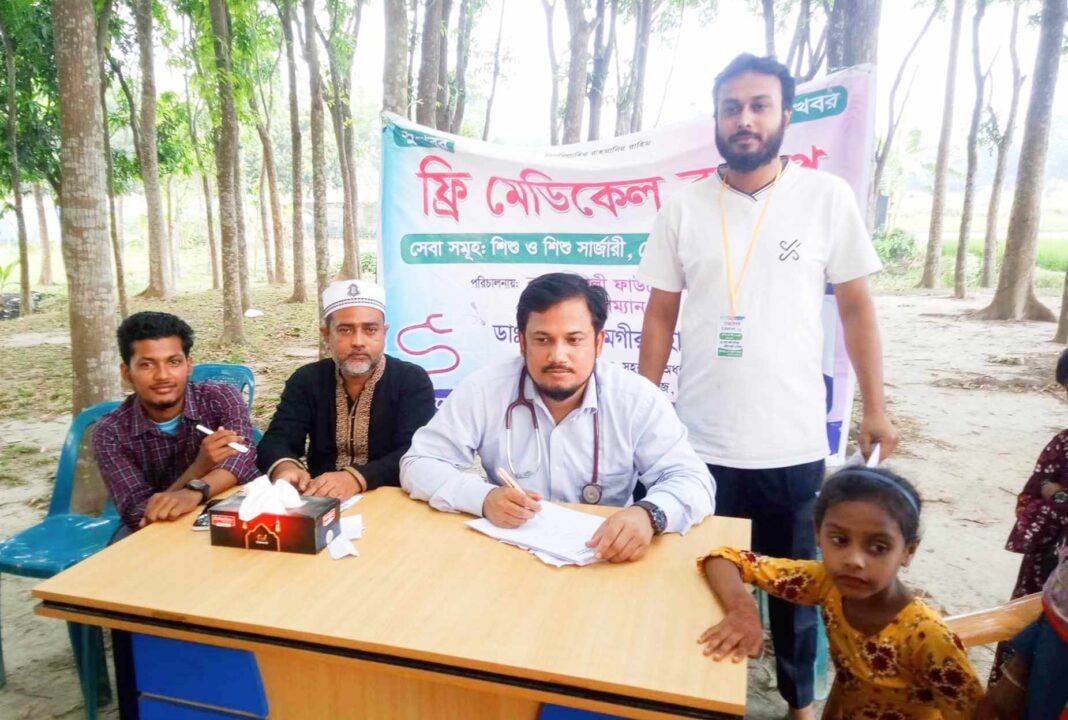 দিনব্যাপী ফ্রি মেডিকেল ক্যাম্প অনুষ্ঠিত হয়েছে।বুধবার বিকাল ৩ টা থেকে  রাত্রি ৯টা পর্যন্ত ফ্রি মেডিকেল ক্যাম্প পরিচালনা করা হয়।ফ্রি মেডিকেল ক্যাম্পে চিকিৎসা প্রদান করেন বাগমারার কৃতিসন্তান, শিশু সার্জারী বিশেষজ্ঞ ও বসুন্ধরা আদ-দ্বীন মেডিকেল কলেজের সহকারী অধ্যাপক ডাঃ মো: আলমগীর হোসেন ও তার সহকর্মীরা।