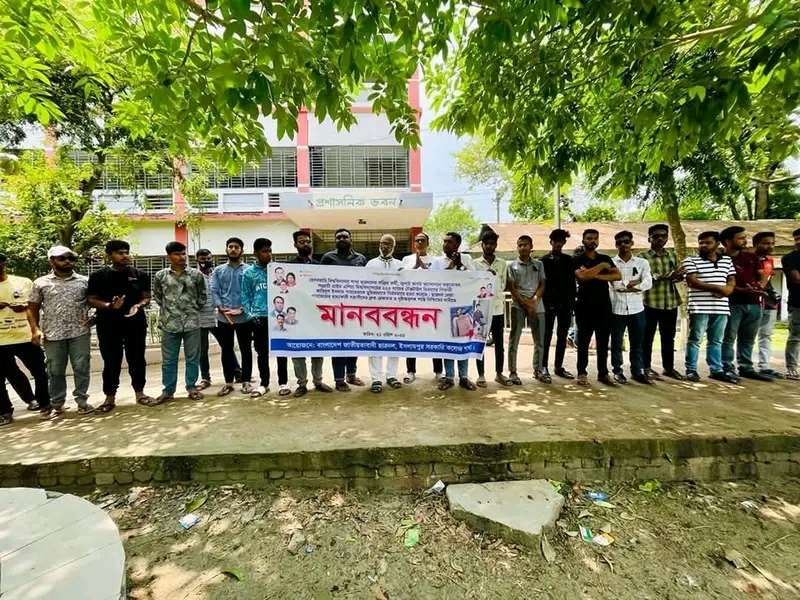 প্রাইমএশিয়া বিশ্ববিদ্যালয়ের শিক্ষার্থী ও ছাত্রদল নেতা জাহিদুল ইসলাম পারভেজ হত্যার বিচার দাবিতে ইসলামপুর সরকারি কলেজে মানববন্ধন করেছে ছাত্রদল সমর্থিত শিক্ষার্থীরা।