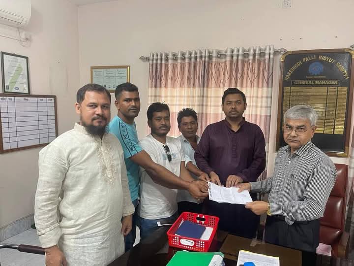 নরসিংদী পল্লী বিদ্যুত সমিতি-১ এর সিনিয়র জিএমের কাছে আবেদন পত্র হস্তান্তর করেন এনসিপির কেন্দ্রীয় যুগ্ম আহবায়ক সারোয়ার তুষার। এসময় উপস্থিত ছিলেন নরসিংদী জেলা এনসিপির সংগঠকবৃন্দ।