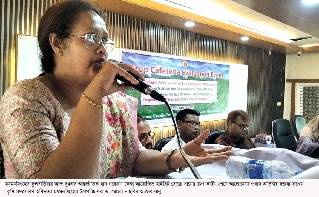 ময়মনসিংহের ফুলবাড়িয়ায় ১৪টি জাতের বেরো হাইব্রিড ধানের ক্রপ ক্যাফেটেরিয়া মূল্যায়ন ইভেন্ট অনুষ্ঠিত হয়। উপজেলার ভালুকজান ব্লকে কৃষকের জমিতে কৃষি বিভাগের উর্ধ্বতন কর্মকর্তারা, ডিলার, মিলার, কোম্পানীর প্রতিনিধি, কৃষক-কৃষাণী ক্রপ ক্যাফেটেরিয়ার অভিজ্ঞতা মূল্যায়নের জন্য গিয়েছিলেন।