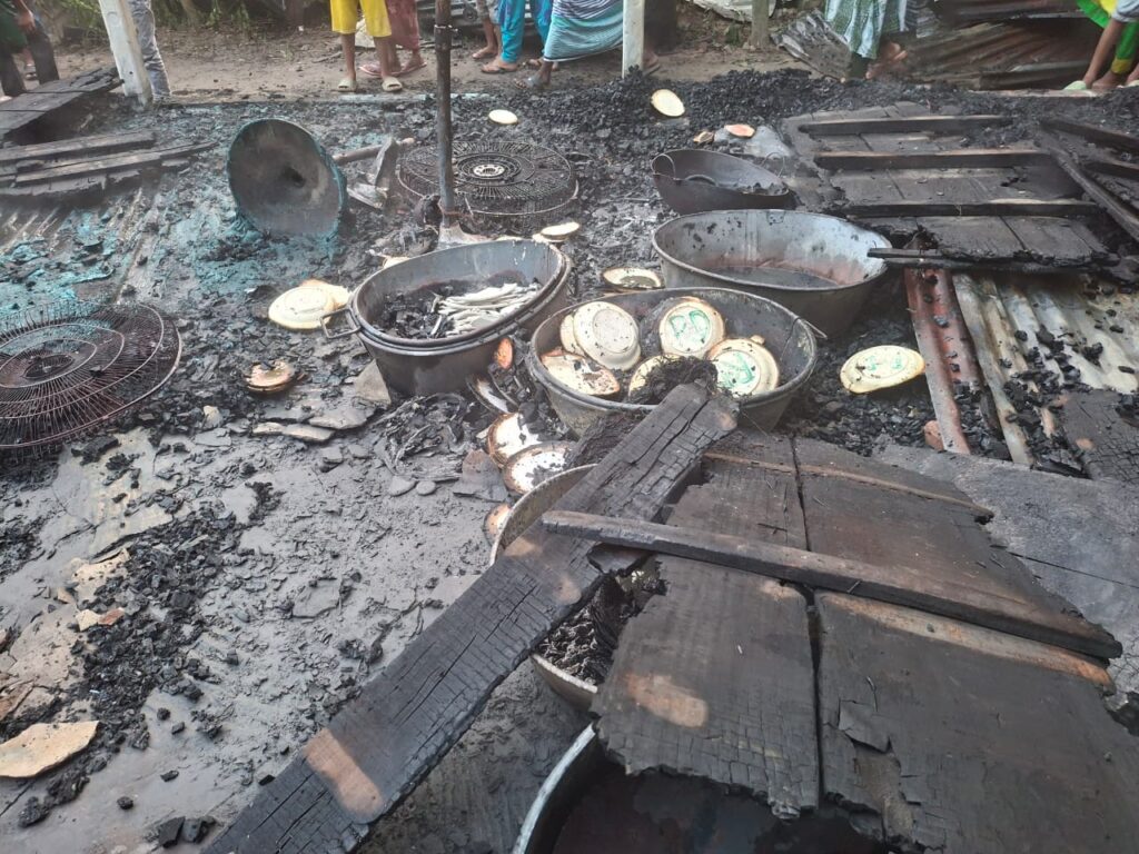 আগুনে সবকিছু পুড়ে নিঃস্ব হয়ে গেল নরসিংদী সদর উপজেলাধীন নজরপুর ইউনিয়নের বুঁদিয়ামারার ডেকোরেটর ব্যাবসায়ী মো. রাসেল মিয়া।