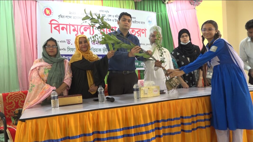 সদর উপজেলা নির্বাহী কর্মকর্তা সিফাত মোঃ ইশতিয়াক ভূঁইয়ার সভাপতিত্বে এতে আরো উপস্থিত ছিলেন সদর উপজেলা কৃষি অফিসার শাহানা বেগম, অতিরিক্ত কৃষি অফিসার সালমা সুলতানা প্রমুখ। এসময় সদর উপজেলার ৮১টি বিভিন্ন শিক্ষা প্রতিষ্ঠানের ১৯শত শিক্ষার্থীদের মাঝে ৭ হাজার ৬শত বিভিন্ন জাতের ফল ও ঔষধি গাছের চারা বিতরণ করা হয়।