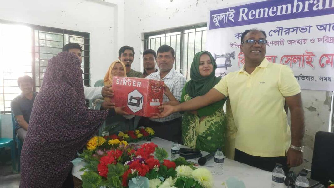 তৃতীয় নগর পরিচালনা ও অবকাঠামো উন্নতকরণ সেক্টর প্রকল্পের জেন্ডার একশন প্ল্যান এর আওতায় কালীগঞ্জ পৌরসভার নিজস্ব অর্থায়নে প্রশিক্ষণ পরবর্তী ১ম, ২য় এবং ৩য় স্থান অধিকারীদের মাঝে এ সেলাই মেশিন বিতরণ করা হয়।